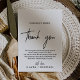 Dieser kalligraphische Empfang Dankeschön-Karte ist perfekt für eine moderne Hochzeit. Das Design zeichnet sich durch eine elegante und dennoch rustikale Typografie aus, die einen schlichten minimalen Look garantiert. Platzieren Sie diese Karten am Tisch für jeden Ihrer Gäste an Ihrem Hochzeitsempfang. Personalisieren Sie die Karte mit Ihren Namen und einer besonderen Danksagung.