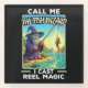 Dieses skurrile Bild zeigt einen Zauberer in einem lila Gewand und Hut, stehend von einem Fluss oder See, mit einer Angelrute mit einem Fisch auf der Linie. Der Zauberer hat einen langen weißen Bart, der das mystische Ambiente verstärkt, während der landschaftliche Hintergrund Berge und einen hellen Himmel zeigt und so die zauberhafte Atmosphäre verstärkt. Der Text "THE FISH WIZARD" an der Spitze fügt dieser fantasievollen Szene eine spielerische Touch hinzu, indem er Zauberelemente und Alltagsgegenstände zu einem charmanten visuelle vermischt.