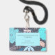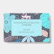 Ein skurriles Abzeichen im Stil der boho volkstümlichen Kunst mit Blumenmuster mit Blätter und gesprenkelter Vegetation in üppig türkisfarbenen und rosa Farbtönen auf türkisfarbenem Hintergrund. Fügen Sie Ihren Namen und Titel hinzu. Ideal für Wellness-Messen oder Veranstaltungen.