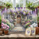 Diese verzaubernde Szene fängt die Essenz eines Märchengartens eines Cottage ein, der vor üppigen Blüten und kaskadierender Wisteria in sanften Violett-, Rosa- und Weißtönen überquillt. Eine charmante, bogenförmige Holztür heißt Sie auf einem steinernen Pfad willkommen, der von blühenden Sträuchern, gepflegtem Grün und träumerischem Licht, das durch das Laub fällt, eingerahmt wird. Die allgemeine Stimmung ist friedlich, romantisch und voller Nostalgie nach einem geheimen Garten – perfekt auf Cottagecore- und Märchenästhetik abgestimmt. Die Komposition zieht Sie nach innen und weckt ein Gefühl von Staunen und Gelassenheit unter dem Blütenhimmel. KI-generierte Kunst.