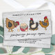 Diese Visitenkarten aus frischen Eizellen zeichnen sich durch ein charmantes, handgemaltes Aquarelldesign mit Vintagem und rustikalem Ambiente aus. Ideal für den Verkauf von Hütten und Hauseiern. Diese Karten zeigen Ihr Familienunternehmen und die freie, Bio Natur Ihrer Hühnereier. Das skurrile und charmante Design wird sicher das Auge der potenziellen Kunden erfassen. Personalisieren Sie diese frische Eizellen Visitenkarten mit dem Namen des Geschäftsinhabers, dem Titel/Firmennamen und allen Kontaktdaten. Diese HühnerVisitenkarten sind ideal für Hühnerfarmen, Eierfarm, Bauer Markt, Bio Farmen, Familienbetriebe. Die Visitenkarte ist zweiseitig. COPYRIGHT © 2020 Judy Burrows, Black Dog Art - Alle Rechte vorbehalten. Whimsischer rustikaler Bauernhof Frische Eier Hühner QR Code Business Card