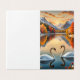 Die Karte zeigt eine atemberaubende Szene von zwei eleganten Schwänen, die eine Herzform mit ihren Hals auf einem ruhigen See bilden. Sie gleiten sanft durch das Wasser, umgeben von zarten, schwimmenden Blume, die sanft die Oberfläche küssen. Im Hintergrund erheben sich majestätische Berge gegen einen Himmel, der in warmen Farbtönen mit goldenem Sonnenuntergang gemalt ist und einen zauberhaften Dämmerung andeutet. Herbstfarbene Bäume umrahmen die Szene, weiche, glitzernde Schneedecke die Landschaft, die ein warmes, aber winterliches Gefühl hervorruft. Die bezaubernde Atmosphäre lädt Sie ein, die Wärme der Liebe und Ruhe während der Festsaison zu genießen.