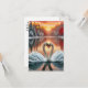 Die Karte zeigt eine atemberaubende Szene von zwei eleganten Schwänen, die eine Herzform mit ihren Hals auf einem ruhigen See bilden. Sie gleiten anmutig durch das Wasser. Im Hintergrund erheben sich majestätische Berge gegen einen Himmel, der in warmen Farbtönen mit goldenem Sonnenuntergang gemalt ist und einen zauberhaften Dämmerung andeutet. Herbstfarbene Bäume umrahmen die Szene, weiche, glitzernde Schneedecke die Landschaft, die ein warmes, aber winterliches Gefühl hervorruft. Die bezaubernde Atmosphäre lädt Sie ein, die Wärme der Liebe und des Friedens während der Festsaison zu genießen.*