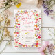 Bewundern Sie die Braut mit dieser bezaubernden Brautdusche, die mit einem zarten, in kräftigen Farbtönen gestalteten Kranz in Aquarelltönen geschmückt ist. Das handbemalte Blumendesign strahlt Charme und Romantik aus und eignet sich ideal für Frühling, Sommer, Garten oder Brautpartys mit dem Thema Boho. Eine schöne Art, Lieblinge für eine besondere Vorehelichtsfeier zu sammeln.