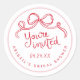 Handgezeichnete Umschlag Aufkleber für das benutzerdefinierte Brautparty. Die Farbe Rot, Weiß und Rosa wird angezeigt, aber alle Farben können von Ihnen bearbeitet werden. "Du bist eingeladen" in einem sonderbaren und lustigen Drehbuch. Personalisieren Sie die Vorlage mit Ihrem Ereignisdatum und -titel. © Kimbellished, LLC