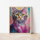 Ein lebendiges, modernes Kunstkatzenportrait mit knalligen, hellen Farben, darunter aquamarin, gelb, rosa und orange. Die spielerische Farbpalette und die ausdrucksvollen Pinselstriche bringen die Persönlichkeit der Katze auf eine lustige, fantasievolle Art zum Leben. Diese lebendige und kühne Interpretation eines klassischen Haustierportraits verbindet zeitgenössischen Stil mit Charme und Charakter, perfekt für Katzenliebhaber und Kunstliebhaber.