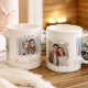 Verbringen Sie saisonalen Beifall mit dieser eleganten und individuell gestaltbaren Kaffeemaschine-Tasse. Dieses Design mit drei Foto-Schnitten, die als hängende Ornamente mit pastellfarbenen Bögen gestaltet wurden, eignet sich hervorragend, um Ihre Familie, Ihre Kinder und sogar Ihre wütenden Freunde zu präsentieren. Der saubere weiße Hintergrund hebt die festliche Botschaft "Happy Holidays" in anmutiger Schrift hervor. Eine moderne und dennoch herzliche Art, Liebe und Freude an Freunde und Familie in dieser Feriensaison zu senden.