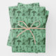 Ein Muster von grünen Pilzen auf einem hellgrünen Hintergrund.