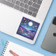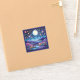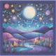 Kontaktieren Sie den Aufkleber mit einer schönen Abbildung. Whimsical und fantasievoll vibe. Ein großer leuchtender Mond mit Sternen überall. Hängend über eine schöne Landschaft von Bäumen, Bergen und einem gewundenen Fluss. Phantastisches magisches mystisches Flair.