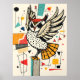 Whimsical Owl auf einem Post mit Flügeln bis zum Flug, Mid Century Modern Vibe. MCM-Stil