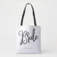 Diese stilvolle Tote-Tasche ist mit einem modernen schwarzen handgeschriebenen Skript ausgestattet und sagt "Braut", mit einem Platz, um Ihren Namen hinzuzufügen.