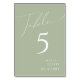 Einführung in unser atemberaubendes whimsical-Skript | Salbei grüne Tischnummer perfekt für Ihr einfaches, modernes Boho Frühlingsfest. Unser elegantes Design umfasst eine lebendige, helle, pastellfarbene Farbpalette mit einem Vintagen, schicken Kalligraphieskript. Ob Sie einen minimalistischen oder klassischen Stil bevorzugen, unser einzigartiges, bearbeitbares Produkt bietet Luxus und Eleganz, perfekt um eine stilvolle und romantische Touch zu schaffen, die Ihren besonderen Tag unvergesslich macht. Kontaktieren Sie uns mit Fragen über das Design, und lass uns helfen Ihnen, die Hochzeit Ihrer Träume.