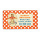 Étiquettes d'affaires de boulangerie sur mesure, amusants et colorés. Un orange avec un motif à pois blanc est l'arrière - plan de ce étiquette élégant, avec une zone de texte en bord de pétoncle couleur ivoire, avec des graphiques rétro amusants d'une cuisine de femme désordonnée surprise. Personnalisez le texte orange et bleu pour votre commerce alimentaire.