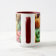 Tasse für morgendlichen Kaffee, Tee, Milch oder Saft mit niedlichem farbenfrohen Foto-Image von grün, rosa, orange, gelb, lila Müsliplantagen.