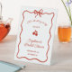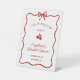 Add a touch of playful charm to your celebration with this whimsical red "She's the Cherry on Top" pedestal sign design. Featuring a wavy, hand-drawn frame and a sweet bow at the top, the artwork centers around a pair of bold red cherries beneath the cheerful phrase "She's the cherry on top." This fun, fruit-inspired layout is ideal for bridal showers or celebratory events with a lighthearted, retro flair. The red text and illustrations pop beautifully against a white background. Fully customizable with your event name, date, and location for a personal, stylish touch.