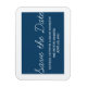 Whimsy Save the Date Magnet in blau und weiß mit einem einfachen und lustigen Skripttypografie-Design. Diese trendy speichern Sie den Datums-Magnet ist einfach, um Ihre Hochzeitsdetails anpassen. Klicken Sie für weitere Anpassungsoptionen auf die Schaltfläche Anpassen.