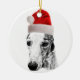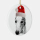 Entzückender Whippet Hund, der eine rote Weihnachtsmannmütze-Weihnachtsverzierung trägt. Diese Whippet Hundeverzierungen machen wunderbare Geschenke für Whippet Eigentümer oder Hundeliebhaber.
