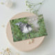 "Thinking of You" Blankokarte für Ihre eigene handgeschriebene Nachricht mit dem Foto eines kleinen Whiskey-Jack-Vogels auf einem Baumzweig. Wählen Sie den finalen Stil Ihrer Karte aus.