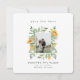 Sonnenblumen Foliage Rahmen Hochzeit speichern Sie das Datum. Foto. Hochzeitswebsite auf der Rückseite. Einfach. Minimalistisch. Runder Platz.