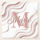 Dieser Untersetzer ist mit einem Marmor-Wirbel-Design mit dem Namen Marie in einer staubigen Rose rosa mit einem dekorativen Serif-Schriftart zentriert auf einem weißen Hintergrund. Der Buchstabe "M" ist in einem größeren staubigen Rose rosa Schriftart über dem Wort "Marie". Das Design ist Set auf einem Hintergrund fließender, gewellter Linien, erstellt mit weißem und Rose Gold Glitzer. Der Glitzer schafft einen Marmoreffekt mit geschwungenen Linien über das gesamte Design und verleiht ihm eine luxuriöse, feminine Ästhetik. Das Muster des Glitzer hat einen Gradienteneffekt und wechselt von der Rose zum leichteren Glitzern.