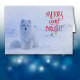 Diese hübsche Urlaubskarte hat ein atemberaubendes Foto von einem kleinen, weißen arctischen Fuchs auf der Vorderseite, mit dem stilisierten Text in rot "Merry and Bright". Der Text im Inneren kann auf alles geändert werden, was man möchte.