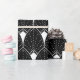 White Art Deco elegantes, geometrisches und nahtloses Muster über einen eigenen schwarzen Hintergrund. Die schwarze Hintergrundfarbe kann gegen ein goldenes Design mit transparentem Hintergrund verändert werden.