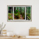 The artwork creates the illusion of having a bay window overlooking a forest path. The illusion makes you feel as though you're looking out at a beautiful forest scenery.