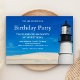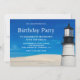 Erleben Sie Ihre Gäste mit dieser eleganten Geburtstagseinladung mit moderner Typografie vor einem schönen Leuchtturm. Fügen Sie einfach Ihre Veranstaltungsdetails zu dieser einfach zu bedienenden Vorlage hinzu, um sie zu einer einmaligen Einladung zu machen. Umdreh die Karte auf, um eine weiße Sandstruktur auf der Rückseite der Karte sichtbar zu machen.