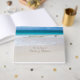 Hübsches Strandthema Hochzeitsgast-Gästebuch mit Foto eines schönen weißen Sandstrandes und farbenfrohen blau-aqua Wasser. Personalisieren Sie die Textfelder für Ihren besonderen Tag. Die passenden Hochzeitsprodukte stehen zur Verfügung.