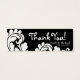 Weiß & schwarz Damask Wedding Gefallen Tag , mit dem die Worte "Danke" in einem extravaganten Schriftart. Die Namen und das Hochzeitdatum der Braut- und Zeltstuben werden unter der Nachricht gedruckt.Hinter der Formulierung ist ein dunkler Hintergrund mit schwarz und weiß Akzenten gedruckt. Sie können Ihre eigene Danksagung oder andere Texte hinzufügen. Es stehen auch alternative Papiere und Farben zur Verfügung. Sie müssen ein Loch in einer Kartenecke mit einem Papierstapel durchstechen, durch ein Band und eine Krawatte zu Ihrer Gunst ziehen.