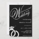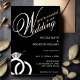 Elegante Schwarz-Weiß Hochzeitseinladung mit glänzenden Diamantenringen. Personalisieren Sie es mit Ihren Veranstaltungsdetails.