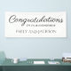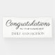 Weiß mit einem eleganten schwarzen Drehbuch-Party "Herzlichen Glückwunsch zu Ihrer Verlobung" Banner personalisiert mit den Namen der Braut und Bräutigam.