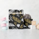Dieses Urlaubspapier zeichnet sich durch ein botanisches Muster aus Blätter und Blume in Weiß, Schwarz und Dunkelgold aus. Verwendung für Geschenkpackungen oder für Papierhandwerke einschließlich Entcoupage. Von unseren Herzen bis zu Ihrem glücklichen Urlaub!