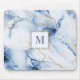White Blue Gold Marble Monogram Initial Mousepad