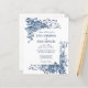 Wie eine Landbrise lädt dieses romantische Wildblume-Blumendesign mit Blume, Botanicals und Schmetterlingen in sanften, klassischen Blautönen auf einem knusprigen, weißen Hintergrund zu Ihrer Hochzeit ein. Die Rückseite der Karte ist weiß, mit zwei Schmetterlingen und einem Gewirr aus Blätter und Beeren. Der Text lässt sich leicht mit Ihren Informationen personalisieren. Benutzen Sie die Vorlagen und das Bearbeitungsmenü. Die Karte hat ein elegantes traditionelles Aussehen, kombiniert mit modernen Aquarellmotiven. Evokes chintz, Delft, skandinavische Dekoration und asiatische Töpferwaren. Whimsical und einzigartige Original-Kunstwerk & Design von Tuzi Williams.