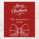 Roter Hintergrund, weißer Text und Bogen Feiern Sie die Saison mit unseren modernen Rotwein-Weinschildern Merry Weihnachtswein Party. Personalisieren Sie Ihren Namen und fügen Sie ihn hinzu.