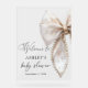 Dieses Stück ist ein zeitloses und elegantes Design mit einer weichen beigen Farbpalette und einem zarten Bogen als Mittelpunkt. Mit seinen perlmuttfarbenen Details besticht es durch seine Eleganz und Eleganz, die sich perfekt für ein stilvolles und herzliches Fest mit Babydusche eignet. Matching-Elemente verfügbar.