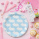 White Bunnies on Pastel Blue Gingham Pattern Pappteller