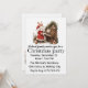 Personalize this year's Christmas invitations with our invitation card featuring a white bunny wearing Christmas clothes playing piano with Christmas berries and gifts around it.