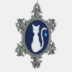Eine weiße Katze mit einem blauen Stern auf einem marinen Hintergrund.