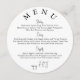 elegant wedding menu, wedding reception menus, circle wedding reception menu, simple wedding menus, classic printed menus, event menu, modern rehearsal menus, daytime wedding menu, white,