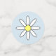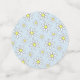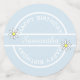 Helle, weiße Gänse mit sonnigen gelben Zentren auf pastellblauem Hintergrund. Die Nachricht und der Name "Geburtstag glücklich sein" können geändert werden, um Ihre eigenen Veranstaltungsdetails in Anzug zu setzen.