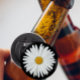Komfortabler, magnetischer Flaschenöffner mit dem Foto einer hübschen, weißen Daisy-Blume auf schwarzem Hintergrund. Ein schönes, blumengeschmücktes Design!