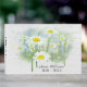 Weiße Gänse mit texturiertem, weiß gekalktem Holzhintergrund für Gedenkfeier oder Beerdigung. Text ist bearbeitbar.