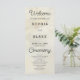 Présentant notre programme de mariage Daisy Delicate, un choix charmant et gai pour les couples qui apprécient la beauté de la simplicité et l'allure de la nature. L'arrière - plan jaune pâle sert de toile parfaite pour un design de marguerite délicieux, ajoutant une touche de fantaisie et de fraîcheur à votre célébration mariage. Le point central de ce programme est le motif de marguerite complexe qui orne l'arrière - plan tout entier. Symbolisant pureté, innocence et nouveaux débuts, la marguerite est une belle représentation de votre romance naissante et du voyage vers votre bonheur toujours après. Chaque marguerite est minutieusement confectionnée, mettant en valeur ses pétales délicats et sa teinte jaune vif, créant une sensation de beauté naturelle et de simplicité. Les détails mariages, y compris les noms du couple, la date du mariage et le lieu, sont élégamment présentés en noir et gris classique en utilisant une simple police de caractères. Ce choix assure une lisibilité claire et facile, permettant à vos invités de suivre sans effort les procédures de la cérémonie. Pour ajouter une touche de sophistication et de charme, les mots "Welcome", "Ceremony" et "Wedding Party" sont joliment écrits dans une jolie police de caractères décoratifs. Cette police de caractères ornée vient compléter l'arrière - plan marguerrier, ajoutant une touche fantaisiste et romantique à la conception globale. Sur la couverture arrière, le programme répertorie les membres de la fête de mariage, en conservant la même police de caractères élégante apparaissant sur la couverture avant. Cette touche personnalisée reconnaît le rôle important joué par vos proches, les faisant partie intégrante de votre journée spéciale. Notre programme de mariage Daisy Delicate sert non seulement de guide pratique pour vos invités, mais aussi de capture l'essence de votre histoire d'amour. La combinaison de l'arrière - plan jaune pâle, du motif margueux complexe, et de la police de script gracieuse crée un design visuellement époustouflant qui rayonne charme, joie et beauté naturelle. Ce programme de mariage est une expression sincère de votre amour, célébrant la simplicité et l'élégance de votre union et laissant une impression durable sur vous et vos invités.