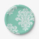 Ein wunderschönes feminines Design in weißem Damast über einem Aquahintergrund. Dieser Teller eignet sich hervorragend für Brautpartys, Geburtstagsfeiern, Hochzeiten und andere Veranstaltungen. In diesem Design stehen passende Papierservietten, Packpapier, Einladungen und Geschenktaschen für einen schönen, koordinierten Blick auf Ihre Veranstaltung zur Verfügung.