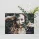 Moderne und elegante Ankündigung des Abschlusses Delicate Script Foto mit einem handgeschriebenen Kalligrafiedesign in Weiß. Diese schicke und stilvolle Typografie-Abschluss-Ankündigung ist leicht zu personalisieren mit einem Foto des Absolventen und ihre Abschluss-Details. Weitere Anpassungsoptionen finden Sie, indem Sie auf Anpassen klicken, wo Sie die Hintergrundfarbe ändern und/oder den Hintergrund des Gittermusters auf der Rückseite der Einladung entfernen.