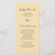 Geben Sie Ihren Hochzeitsgästen die Reihenfolge Ihrer Frühjahrsfeier mit diesem eleganten White Doppel Daffodils Hochzeitsprogramm. Passen Sie es mit den persönlichen Namen der Braut und des Bräutigams und spezifischen Einzelheiten der Hochzeitsfeier und der Zeitleiste an. Dieses klassische botanische Hochzeitsprogramm besticht durch ein digital gemaltes Blumenfoto aus weißer Frühlingssonne mit doppelter Nachtkerzenblüte mit weißem beigen Hintergrund. Perfekte Inspiration für die Paare, die eine Narzisse oder März planen, April oder Mai Frühjahr Natur Hochzeit Thema.