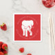 White Elephant on Red Background mit benutzerdefiniertem Circle Text: White Elephant Gift Exchange Party @ The Williams Family, 23. Dezember 2025, und Custom Center Text: Enjoy. Sie können alle Texte ändern oder löschen: Einzigartiges Weihnachtsweih oder Ihr Party Paper Napkins