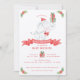 Diese niedliche Babydusche des White Elephant bietet eine Aquarellenausbalancierung auf seinem Kofferraum. Unter dem Elefanten steht ein rotes Banner, das "Baby Shower" in einem weißen Schriftart sagt. Die untere Hälfte der Einladung hat alle Party-Details in rot auf weißem Hintergrund. Die Rückseite der Einladung hat einen koordinierenden roten Hintergrund.